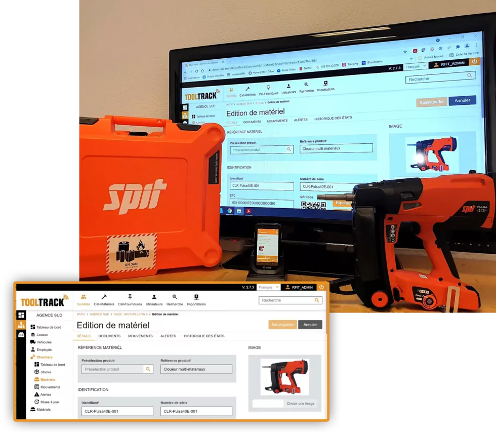 Notre logiciel de traçabilité TOOL-TRACK est une solution cloud qui fonctionne avec différentes techniques d’identification qui vont servir à marquer le matériel et à le suivre : étiquettes code-barres, QR-code, étiquettes RFID, étiquettes ESL à affichage dynamique, tags Bluetooth, trackers GPS…